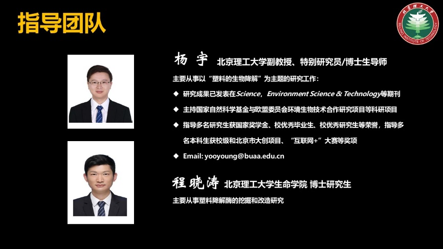 “环境生物技术”课题组现有教师1人,博士研究生4人,硕士研究生4人,本科生5人,为学习刻苦、基础扎实、有志于接触科研的本科生提供优质平台,支持参加挑战杯、互联网+、全国大学生生命科学竞赛等科创比赛以及申请国家级、市级、校级大学生创新创业项目。欢迎对生命科学、酶工程和塑料降解技术等领域感兴趣的同学积极联系,为祖国的环境治理、生态保护及生物技术产业事业贡献自己的青春力量!