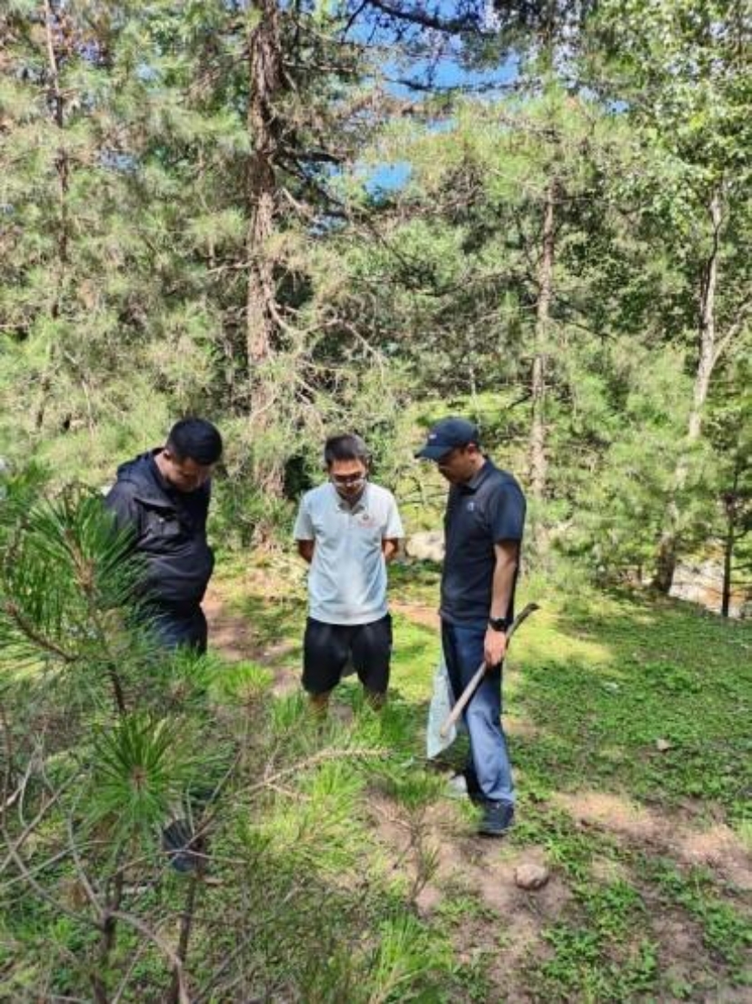 科考途中,队员们始终不忘环保责任。在采样点及行进路线沿途,大家主动捡拾散落的垃圾(塑料瓶、包装袋等),用实际行动守护这片绿水青山,将“无痕山林”的理念融入实践全程。孙老师全程悉心指导,不仅解答技术难题,更在采样方法、安全规范、生态保护意识等方面给予了宝贵的现场教学。