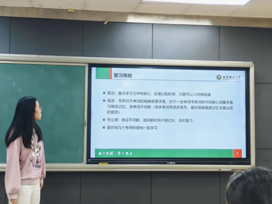 第三个分享的学姐是李婧怡,去年她以初复试总排名第三的成绩成功上岸。她着重介绍了每一科具体的备考方法。