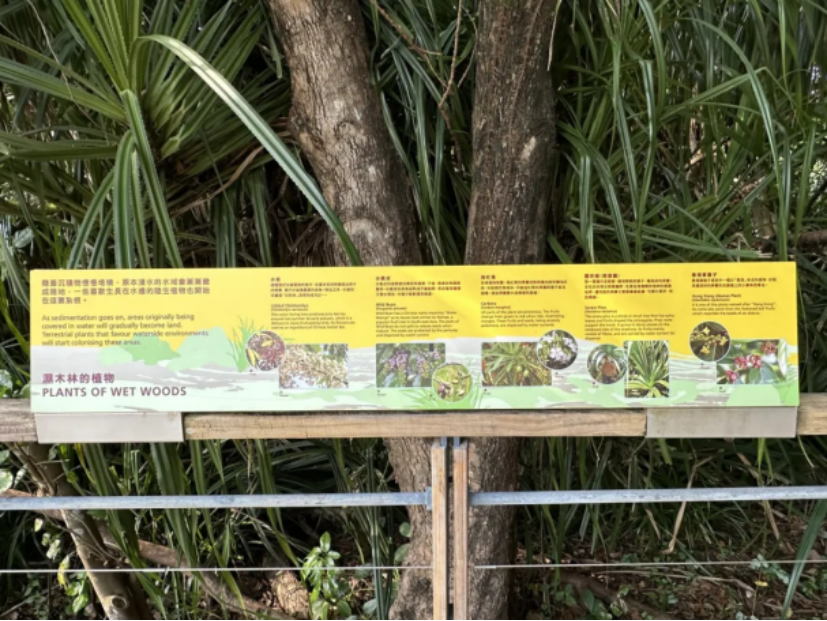 在香港湿地公园中,我们发现了有秋茄树、桐花树、银叶树、蜡烛果、木榄、卤蕨、水烛、福寿鱼、薇甘菊、巴西鲁等在红树林这个特殊的湿地环境中生存的物种,这得益于红树以凋落物的方式,通过食物链转换,为海洋动物提供良好的生长发育环境,同时,由于红树林区内潮沟发达,吸引深水区的动物来到红树林区内觅食栖息,生产繁殖。由于红树林生长于亚热带和温带,并拥有丰富的鸟类食物资源,所以红树林区是候鸟的越冬场和迁徙中转站,更是各种海鸟的觅食栖息、生产繁殖的场所。