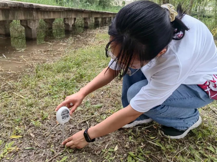 土壤环境监测:我们使用便携式土壤检测仪进行现场测定,每个公园选取3个具有代表性的采样点,记录平均值。序开展水质与土壤的取样工作。队员们沿着湿地的边缘选取了多个关键采样点,使用专业的采水器和土壤采样器,分别提取水样和土壤样本,并详细记录采样点的具体位置和环境特点。通过此次检测,我们希望能够为银滩湿地公园的开发与保护提供科学有效的数据,为湖泊的生态保护提供有效资料。